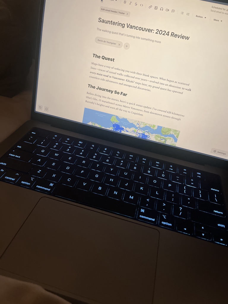 These, plus about 200 others, made for a busy sauntering year. I ran the numbers and 2025 saw 422 km walked, 21 new neighbourhoods and 124 hours on foot.