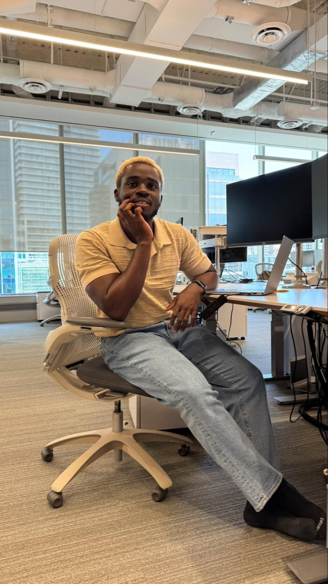 quarterly office pics from whenever I visit the downtown office. audience favourite was this one which I captioned 'corrupt african civil servant pose'